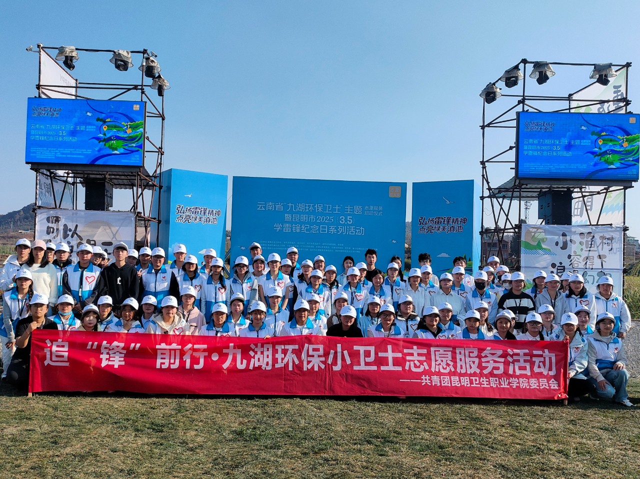 2025年3月5日,昆明市“3.5”学雷锋纪念日暨“九湖环保卫士”主题志愿服务活动在晋宁区上蒜镇牛恋小渔村举行。为弘扬雷锋精神,践行志愿服务理念,浦京团委组织100名志愿者积极参与此次活动,承担了签到组、站位领队、礼仪服务、公益行打卡点等多项志愿服务工作,用实际行动展现了新时代青年的责任与担当。