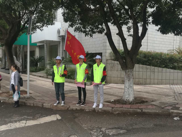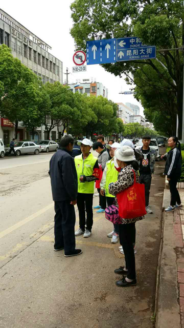 志愿者们随后来到了红绿灯路口和公交站台,对过马路的民众们进行交通规则的宣传,并引导群众们过马路,在协助交警同志维护交通秩序的同时,也对不尊守交通规则的民众的行为给予提醒,开展文明劝导,对行人及非机动车随意乱闯红灯等不文明的行文进行劝阻,创造安全畅通的交通环境。