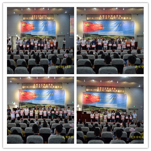 伴随着庄重而又嘹亮的团歌,表彰大会拉开序幕。首先,学院党委副书记张晓刚同志宣布五四表彰决定,本次表彰会对135名优秀团干部、213名优秀团员、39 名优秀社团会员 、28名优秀社团干部、18个红旗团支部优秀指导员及优秀团支部书记共451名(人次)先进个人进行了表彰,并表彰了18个红旗团支部和5个星级社团。莅临大会的领导和嘉宾为先进个人代表和先进集体代表颁奖。