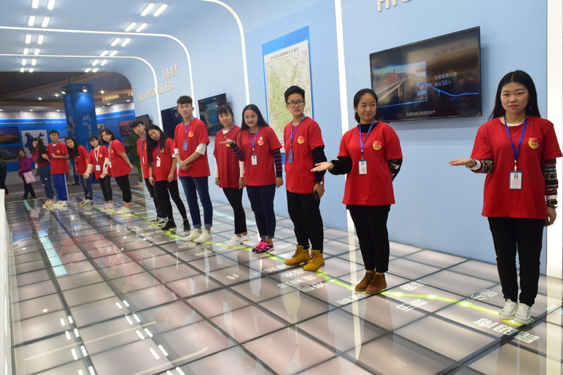 一展厅围绕“闯出一条跨越式发展的路子”的主题,集中展示了十八大以来云南发展路程;