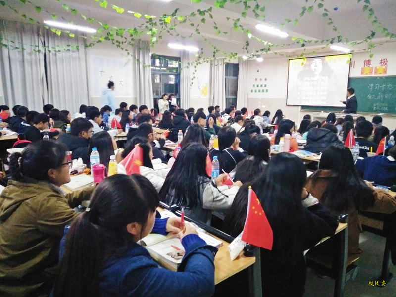 本次活动内容丰富、形式多样。各班团支部书记组织本班以主题班会、主题演讲、观看影片等方式使同学们明确了自己要学好专业知识,服务社会大家庭,争做文明好青年的目标。主要内容以十九大中习近平总书记的讲话为核心,争做“五有人才”为基础展开,将来为祖国发展做出贡献。同时提升同学们的爱国热情与班级凝聚力,为深入贯彻学习十九大报告精神做好了铺垫。