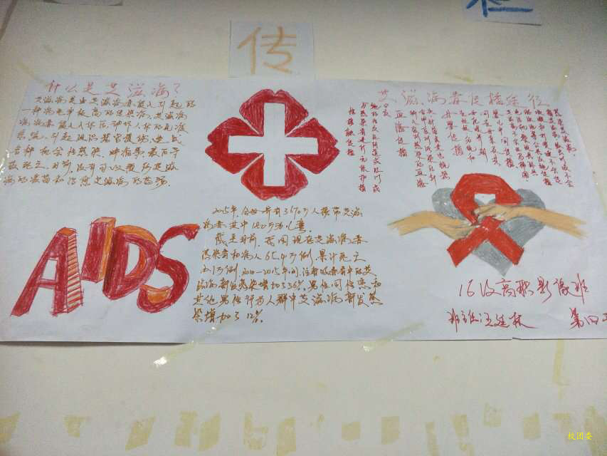 活动前期,各班同学们为此次活动进行了充分的准备,每个班级都以预防艾滋病为主题绘画出各式各样有关的海报,让更多的同学了解了本次活动。