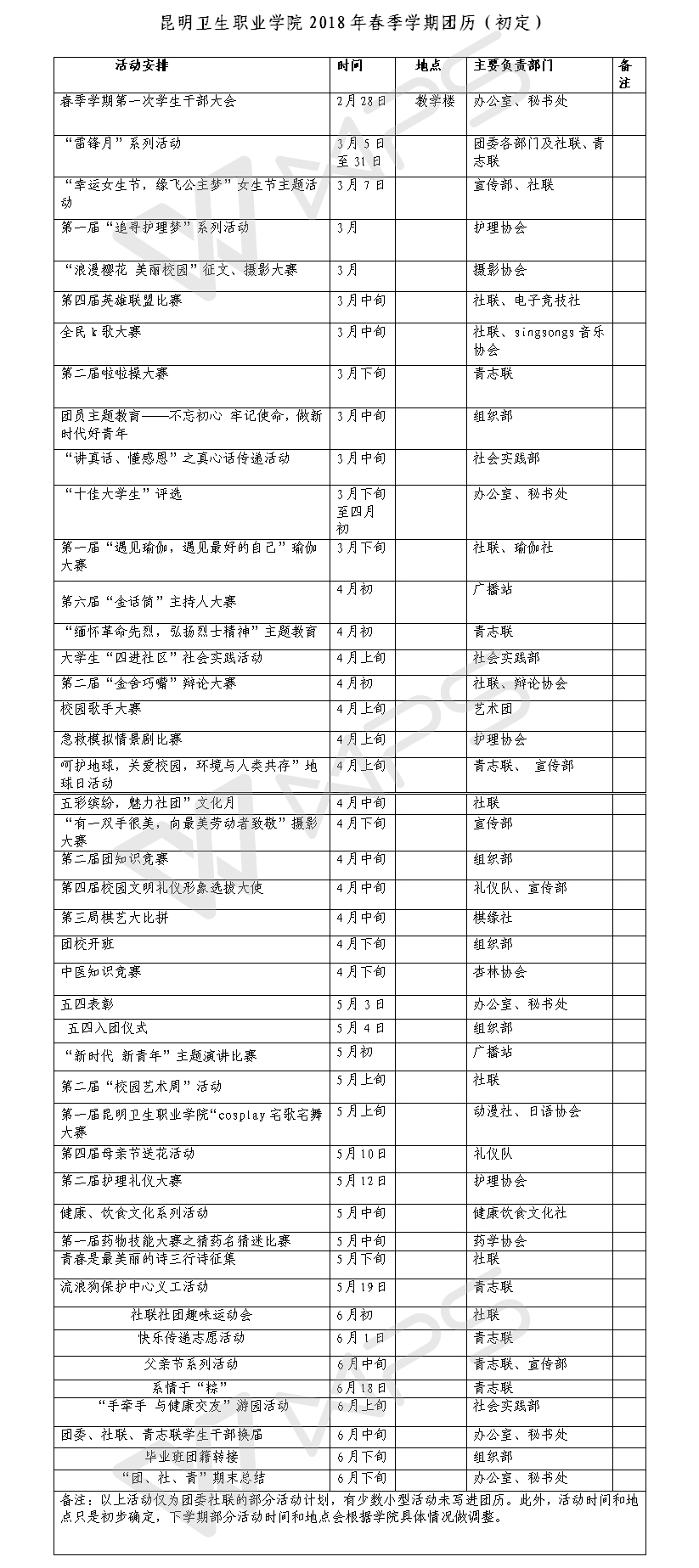 350vip浦京集团官网2018年春季学期团历(初定)