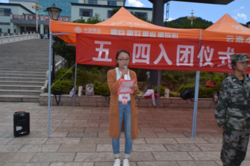 首先,宣誓仪式开始,奏唱《光荣啊,共青团》,出团旗,紧接着主持人宣布了新入团的50名同学名单,并由校团委组织部保虹梅同学带领50名新团员手握拳头,面向鲜红的团旗,进行庄严的入团宣誓,老团员为新团员佩戴团徽仪式。随后由16级五年制影像1班的周志恒同学代表新团员作发言。活动中,一个个朝气蓬勃的面孔,标志着一颗颗努力学习、不断进步的心;一句句铿锵的誓言,坚定了一个个执着为共产主义事业奋斗终身的信念。