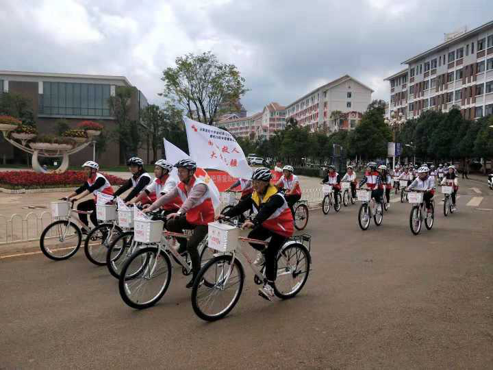 无偿献血是社会文明与进步的标志,中华民族素有救死扶伤、乐善好施的美德。血液是宝贵的,更可贵的是关爱他人的博爱之心。献血是爱心奉献的体现,使病员解除病痛甚至抢救他们的生命,其价值是无法用金钱来衡量的。我们350vip浦京集团官网红十字会也加入到了博爱单车无偿献血宣传校园骑行活动中,10月27日,博爱单车无偿献血宣传校园骑行活动秉承“青春飞扬 为爱骑行”无偿献血骑行宣传活动在云南省民族大学呈贡校区举行。