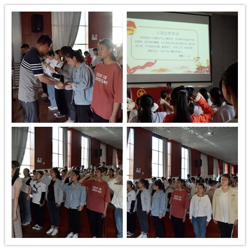 大会开始,全体人员起立合唱团歌,整齐嘹亮的歌声展现了昆卫学子作为五四精神继承者的积极奋发的精神面貌。随后,新发展团员举行集中入团仪式,出席大会的领导为新团员代表佩戴团徽、颁发团员证,全体新团员面向团旗庄严宣誓。