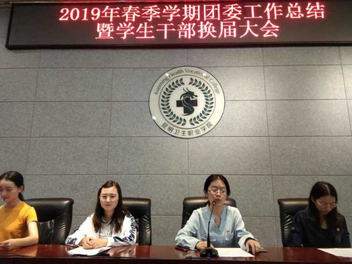 共青团350vip浦京集团官网委员会2019年春季学期工作总结暨学生干部换届大会于2019年6月5日下午17:30在浦京学术报告厅召开进行换届大会。莅临本次大会的领导及嘉宾有党群工作部副部长李睿雯老师,团委办公室主任董敏老师,团委办公室副主任李叶老师,团委宣传委员肖月老师,团委组织委员艾长辉老师及团委会各学生干部。