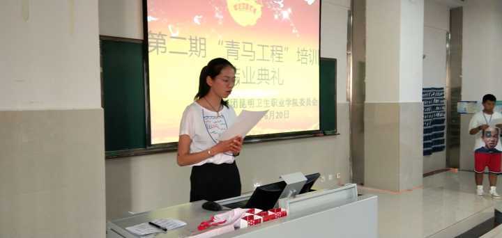 团歌奏唱完毕后,团委办公室主任董敏老师为第二期青马工程结业仪式致辞。董主任向青马班结业的学员表示祝贺!其次,董主任指出,此次只是学习过程的一小点,并不是学习的终点。大学生骨干要有担当、有奉献精神和责任意识,培训班结束回到各自学生组织后,要将在培训班所学带到同学当中去,要将培训班的精神传承下去,为浦京学生工作和人才培养做出更大贡献。她对所有学员表达了殷切的期望,希望各学员能够持之以恒,朝着成为优秀的青年马克思主义者而不懈奋斗。