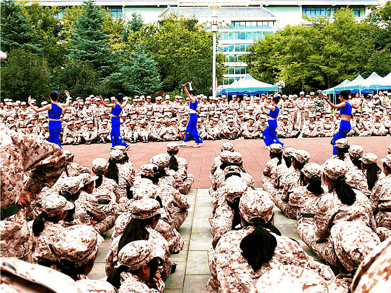 军训不仅只有整齐有序的队形队列,更有有趣和谐的学生教官情,精彩的节目同时也使得2019级新生在艰苦的军训生活中提前融入大学校园文化生活。日后的记忆中,我们的青春之歌里少不了这段多彩军训。