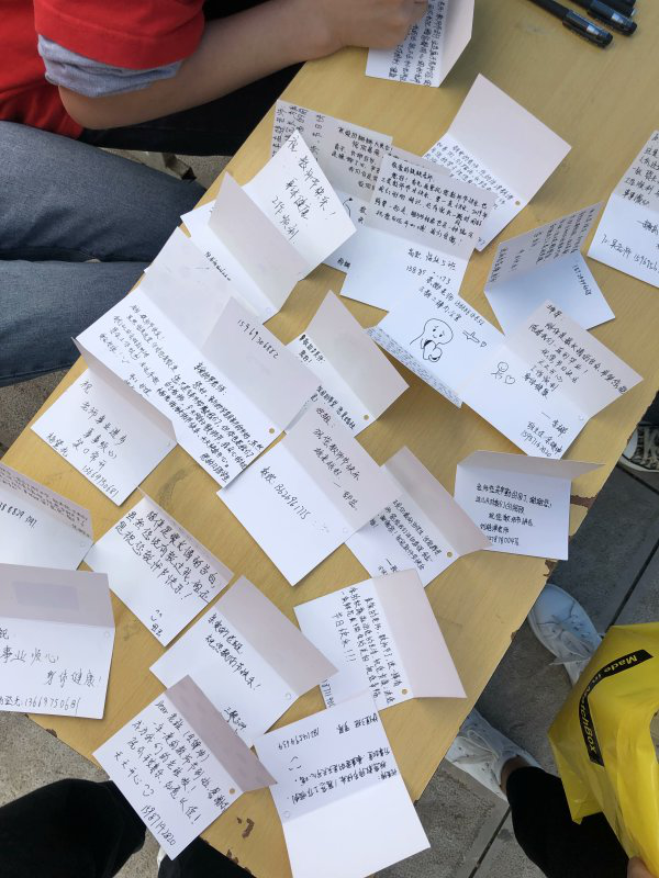 活动当天,为了吸引同学更好的参与到活动中,在白求恩雕像旁进行活动宣传,贺卡免费提供随意选择自己喜欢的,在一张张贺卡上写下对老师最美好的祝福,我们让写祝福语的同学留下老师的姓名和联系方式,以便我们在活动结束后为同学们传递祝福,同学们都积极参加此次活动 。