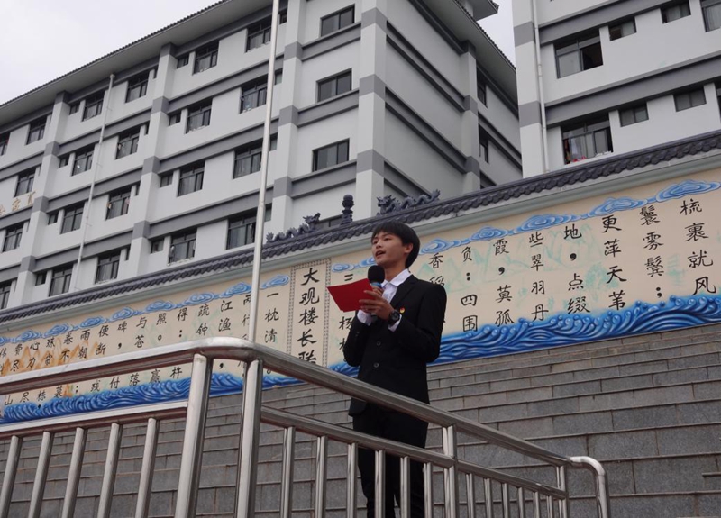 为了隆重庆祝中华人民共和国成立70周年,大力唱响礼赞新中国奋进新时代的青春主旋律,共青团350vip浦京集团官网委员会组织全体团员青年集中开展,“我与祖国共奋进——国旗下的演讲”特别主题团日活动,激励和引导广大青少年,更加紧密的团结在以习近平同志为核心的党中央周围,大力弘扬以爱国主义为核心的伟大民族精神,不忘初心,牢记使命,为实现中华民族伟大复兴的中国梦不懈奋斗。2019年9月25日,学校足球场上彩旗飘扬,气氛隆重。团委会组织部主持人肖茗泽宣布活动开始。
