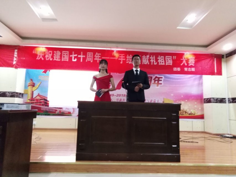 随着主持人宣布完评分标准,我们的参赛选手依次上台去介绍自己的作品同学们积极参加,参加的同学带着自己满意的作品一路过五关斩六将的进入了决赛。进入决赛的同学我们激情昂扬的向我们介绍着自己的作品和创作理念,让我们知道了祖国七十年来的艰苦历程和风雨也让我们感受到了同学门的爱国之心这一副副色彩鲜艳,绘画生动的绘画作品凝结了同学们对祖国的点点心意,每个细节都蕴藏着同学们对祖国的热爱和赞美。活动进行着热闹而有序。多彩的画笔牵动着同学们的梦想,绚丽的画卷承载着祖国的未来。