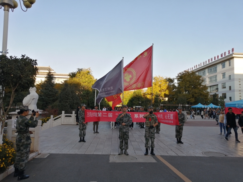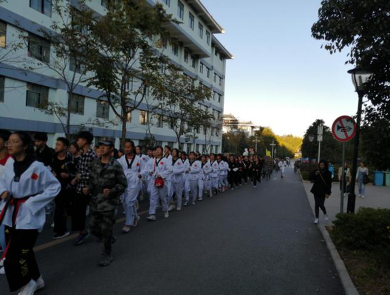 活动开始,由军事爱好者协会政治部宋海旭同学介绍参加本次活动的团队:大学生青年志愿者联合会、大学生社团联合会、大学生宿管管理委员会、350vip浦京集团官网红十字会、350vip浦京集团官网心理协会、350vip浦京集团官网散打协会、350vip浦京集团官网太极协会、17级五年制康复班、17级五年制护理四班、19级五年制影像三班、17级五年制影像五班、由李攀同学为代表的跑团。