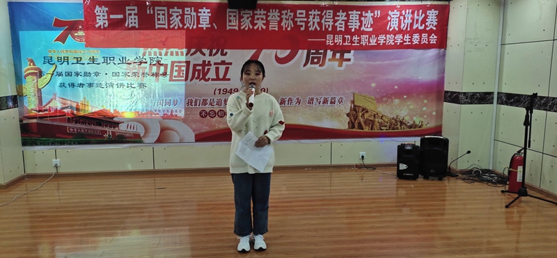 他们的演讲慷慨激昂、振奋人心。他们用他们的言语表达了他们对称号获得者的赞颂和崇敬。祖国70华诞,一个个人们耳熟能详的名字——于敏、袁隆平、屠呦呦……他们都在各自领域做出了惊天动地的贡献,是当之无愧的国家脊梁;他们与共和国同行,与时代同行,所拥有的家国情怀和人格魅力深深折服国人。昆卫学子,用激昂的语调,讴歌他们的故事,赞扬他们的精神。