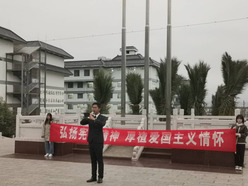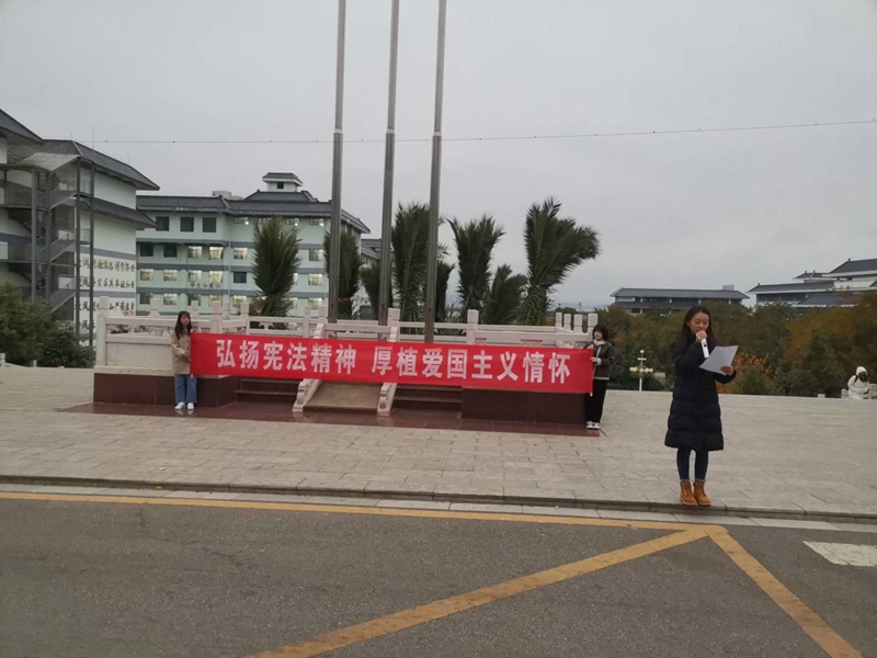 于12月2日,早晨7:30学院团委组织班级代表及团学干部参与升旗仪式并由学生代表尹天宇同学宣读了学习宪法、宣传宪法的倡议书,随后团委副书记李叶老师领读宪法部分条款,随后宣布350vip浦京集团官网“宪法宣传周”系列活动正式启动。