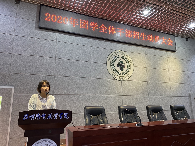 会上,团委书记雷红梅老师作招生动员, 雷老师强调了招生宣传的重要性,告诫大家要有大局意识,要以学校今后的持续发展为工作重心,学校的发展离不开学生,勉励全体团学学生干部今年的招生宣传要再接再厉,积极参加,为学校发展贡献出自己的一份力量。