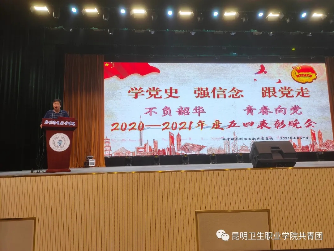 党委副书记张晓刚同志代表学校党政向获得表彰的集体和个人表示热烈的祝贺,向辛勤工作的共青团干部和青年工作者表示衷心的感谢,向全校团员青年致以诚挚的问候和良好的祝愿。他指出过去的一年,校团委在学校党委的坚强领导下,紧紧围绕学校党政中心工作,聚焦主责主业,凝心聚力开创学校共青团工作新局面,为学校的发展和建设做出了应有贡献。在伟大的中国共产党成立100周年、五四运动102周年之际,他寄语昆卫青年:一是坚定理想信念,从党史学习中激发信仰、获得启发、汲取力量;二是锤炼品德修为,在矢志追求中增强定力、明辨是非、培根铸魂;三是勇于开拓奋进,在时代进程中实学实干、敢为人先、追求卓越。