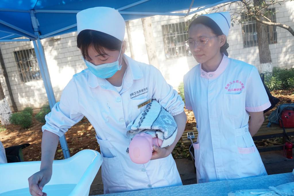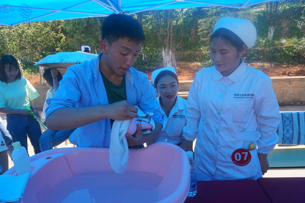 除省赛成果展示和护理礼仪展示,我们还在海屯、海源两个进行了外科包扎、婴儿盆浴与抚触、拔罐、按摩、暂时冠制作等专业技能展示,以及职场面试模拟、辩论、英文影视剧配音等比赛。领导、家长和学校师生积极体验,展示的师生以精湛的专业技术、彬彬有礼的良好风貌得到了领导、家长一致好评,体现出了昆卫极高的教学质量和课堂质量。