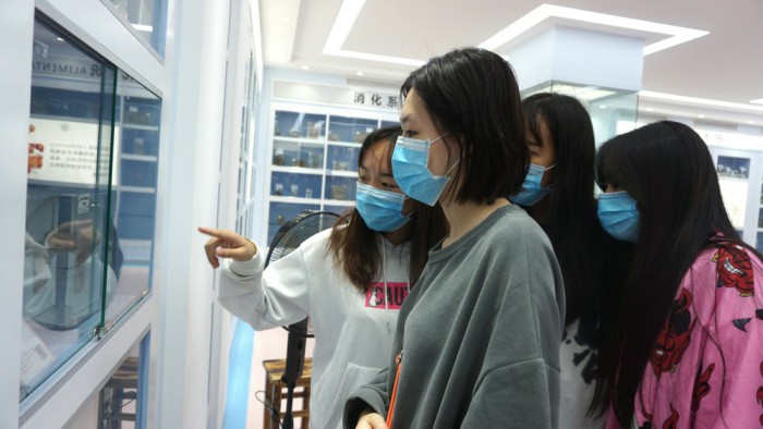 2020年5月23日,浦京2020级春季护理班自发组织参观生命科学馆,践行医学生职业素养,向生命致敬。基础医学部金杰老师带领同学们参观并做了细致的讲解。