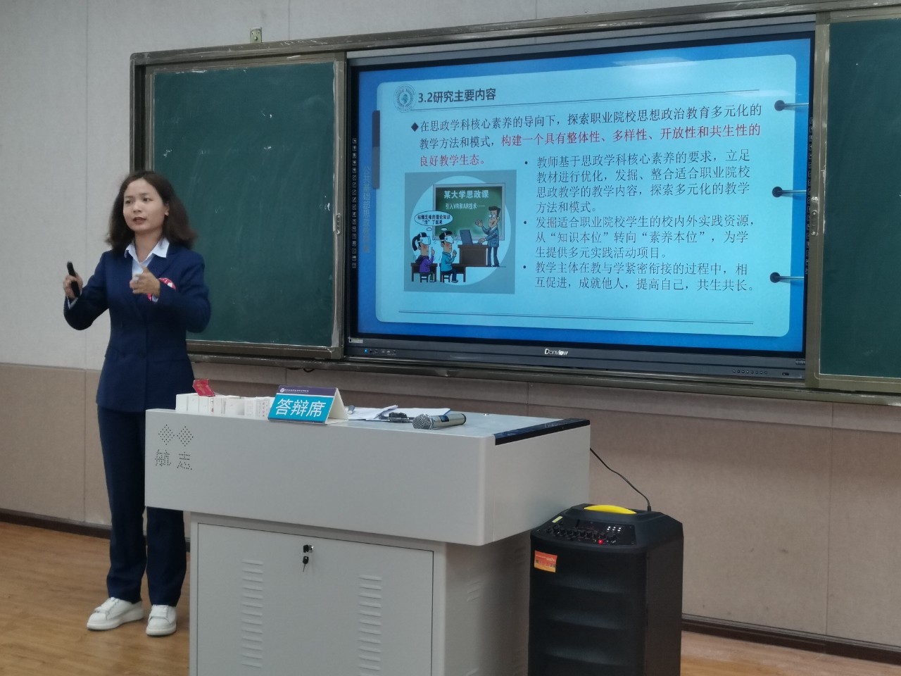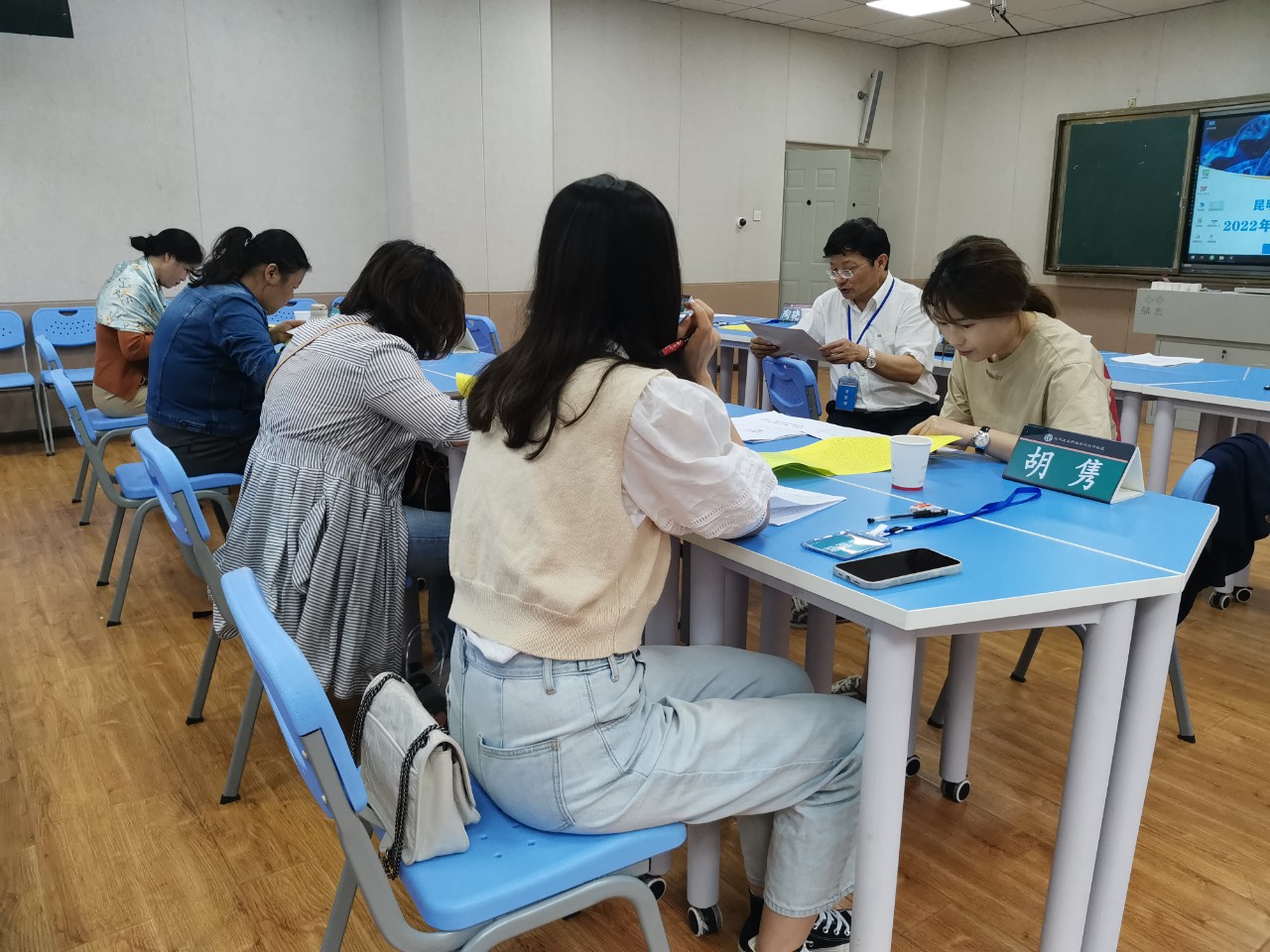 杨帆老师介绍了本次评审会议的流程后,评审正式开始。前期申请了校级科研课题的老师们依次汇报了立项的依据和意义、要研究的问题、理论意义和实践意义、研究内容等内容,评委对照评分表逐项依次进行评分。