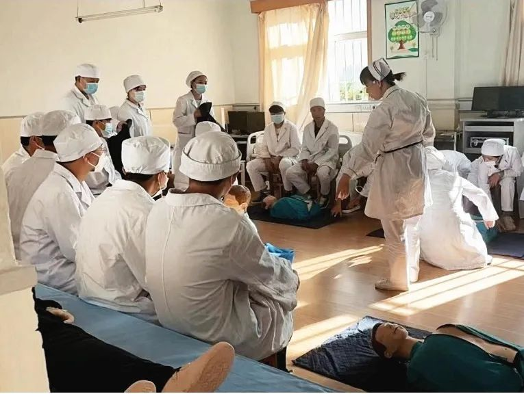 培训前为确保培训教学质量,心肺复苏组、外科包扎组均组织了培训前集体备课,做到“四统一”,即教学进度、教学目标、教学重难点、操作规范统一。