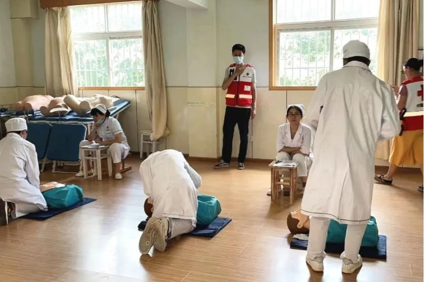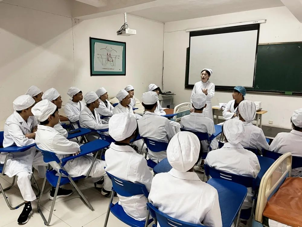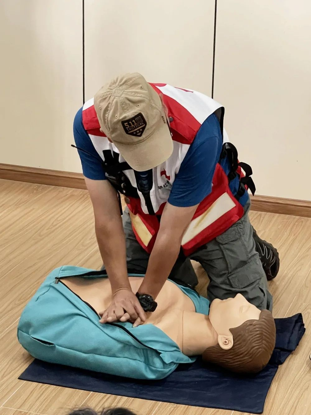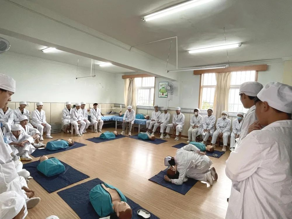 培训过程中,老师们重点讲授了常见意外及突发事件的处理、单人徒手心肺复苏操作流程、创伤救护的现场急救处理及相关的实用急救知识与突发伤害救护等基本知识和基本救护技能。通过教学练一体式教学,小组合作练习等方式开展培训教学,老师们耐心讲解、认真指导,带领学生梳理重点难点技能,学生们认真领会,反复练习。