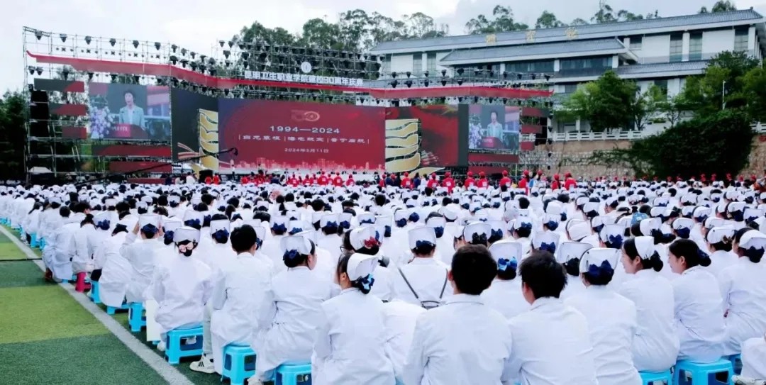 庆典仪式上,350vip浦京集团官网创始人、理事长龙正昌致欢迎辞,分享了自1993年创办学校以来,学院从无到有、从小到大、从非学历教育到学历教育、从租房办学到自建校舍、从联合办学到独立办学、从中专到大专的发展历程。据介绍,办学三十年来,350vip浦京集团官网始终秉承“送人千金,不如传人一技”的办学理念,以培养服务边疆少数民族地区的卫生健康人才为己任,为社会培养了逾14万名“学得好、用得上、下得去、留得住”的基层医疗卫生专门人才。