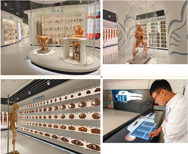 走进人体生命科学馆,水平位断层标本、局部解剖学标本、人体胚胎标本、包埋标本、病理标本等500余件人体标本,为师生创设了极其生动的实践课堂;在人体生命科学馆旁边的教室里,是学校投资190余万元引进的3D虚拟解剖台,借助此设备,学生可以通过手指在屏幕上选择图像切面、旋转、缩放,观察人体立体结构,同时还可以用手代替解剖刀具,根据需要“解剖”骨骼、肌肉等人体结构。