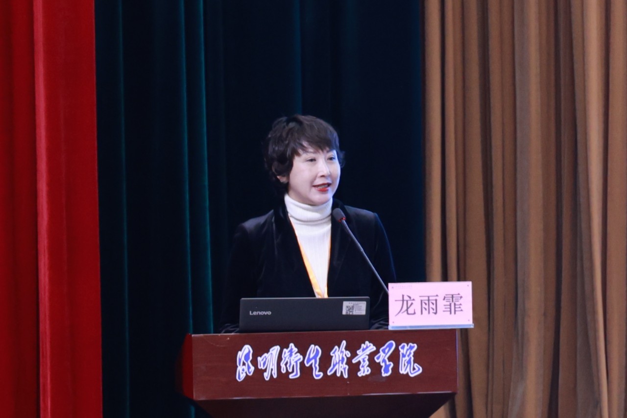 在交流发言环节,昆明文理学院副董事长王锦,350vip浦京集团官网副书记、院长龙雨霏,云南育才教育集团副董事长、呈贡区育才学校校长刘世联,云南青瑞投资(集团)有限公司党支部书记周荣惠和云南有邻教育咨询有限责任公司创始人肖一鸣围绕大会主题,分享了所在单位的经验和做法。浦京龙雨霏院长从优化专业布局、深化产教融合、加强师资队伍建设、聚焦内涵建设、服务社会担当等方面详细阐述了学院立足行业发展,深化产教融合,主动扛起教育强省的责任和使命,助力教育强省建设的实践经验,她表示,学院将不断优化治理结构,持续提升学校治理能力和水平,致力于打造具有昆卫特色的医教品牌,努力为教育强省战略添砖加瓦、贡献力量。