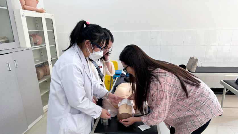 参训的教职工们积极参与模拟训练,对照人体模型按照规范步骤进行实操演练。培训老师反复强调要注意的关键细节,针对参培人员操作过程中的不规范动作,进行一对一的纠正和亲自示范指导,力求每一个动作做到规范和标准,确保每个人都能掌握正确的急救技能。