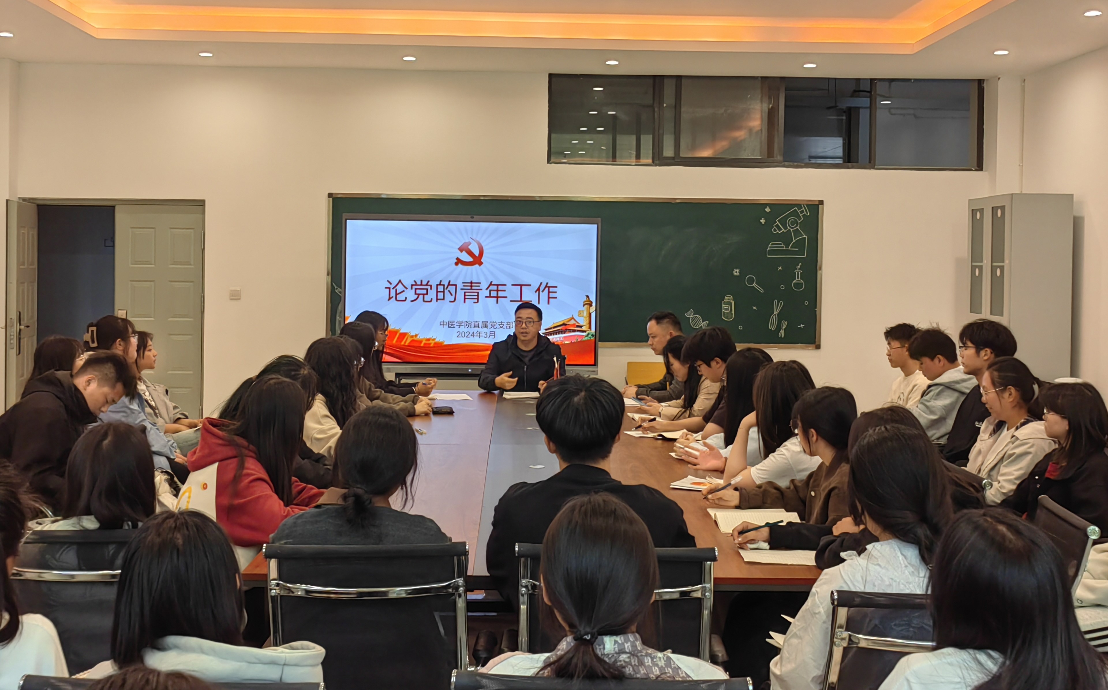 新时代下,党的青年工作的重要性不言而喻。青年是祖国的花朵,是祖国的未来和希望,而青年是时代的主角,也是社会发展的重要力量。因此,做好新时代党的青年工作至关重要。2024年3月18日晚,中医学院直属党支部组织中医学院全体党员教师及入党申请人学习“论党的青年工作”重要内容,会议由中医学院直属党支部副书记余建坤同志主持。