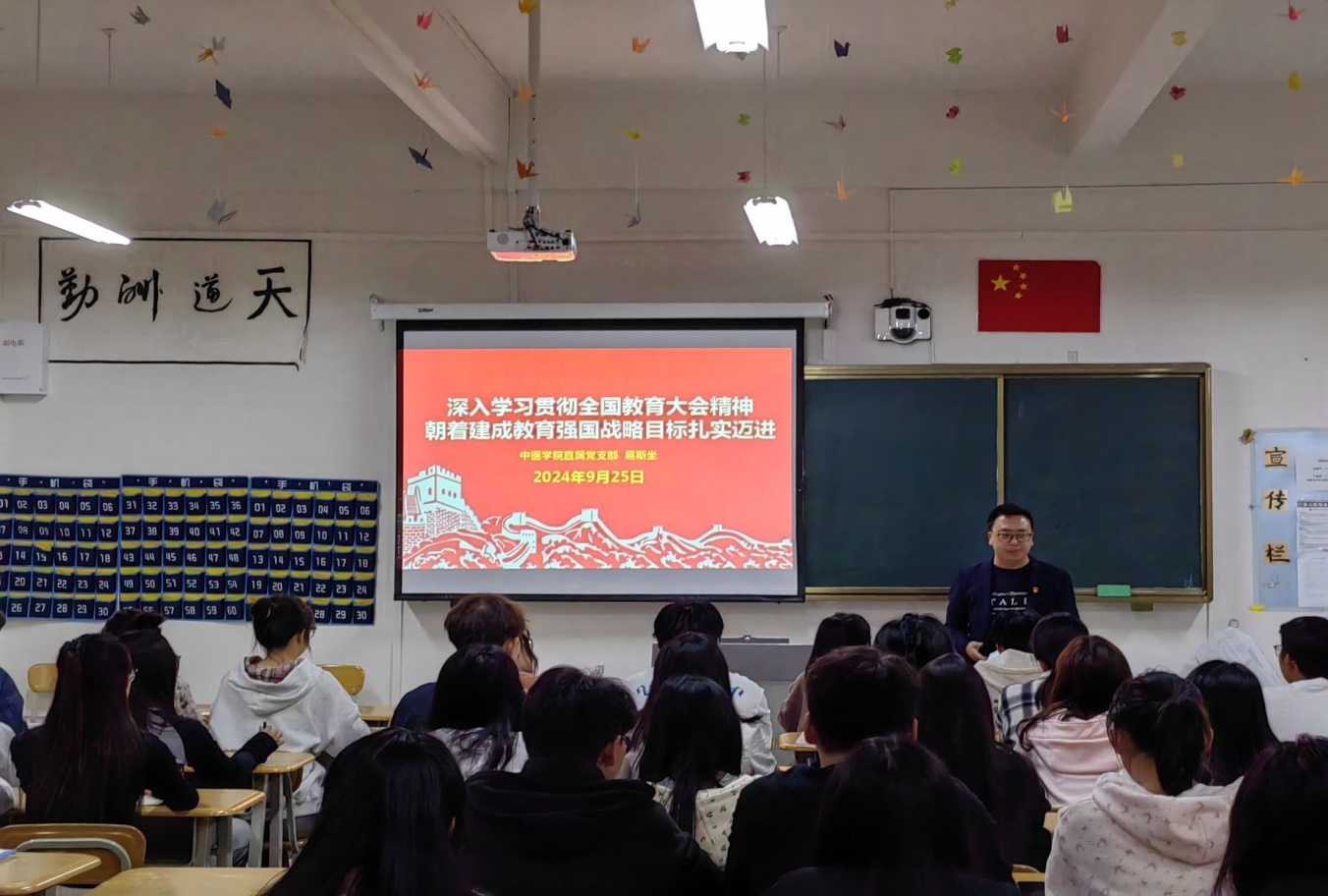 为深入学习贯彻全国教育大会精神,积极响应党中央关于建设教育强国的号召,中医学院直属党支部于2024年9月25日组织了一系列学习活动,旨在将会议精神内化于心、外化于行,推动学院教育事业高质量发展,朝着建成教育强国战略目标扎实迈进。
