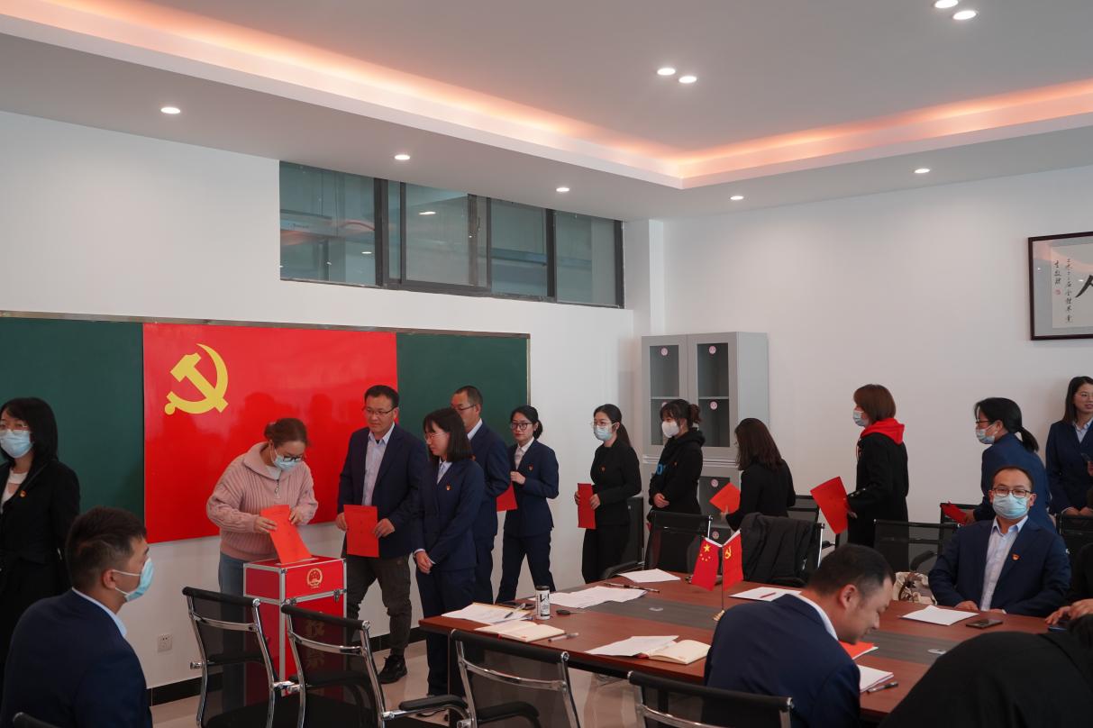 会议在庄严的《国歌》声中拉开序幕,通过《选举办法(草案)》,推荐了监、计票员,介绍候选人的基本情况后进行了正式选举。选举产生了新的支部委员易斯坐、董敏、李晓颖三人,易斯坐同志当选为总支部书记。整个选举过程符合《党章》和《选举办法》规定,参选党员“讲政治、守纪律、守规矩”,圆满完成了选举任务。
